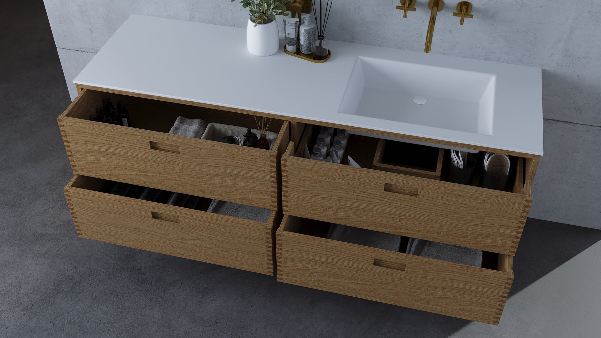 B&B Design Aurora is an exclusive, cabinet-made bathroom furniture that combines elegance and functionality. With a focus on Danish craftsmanship and the best materials, this furniture creates a stylish and sophisticated expression that fits perfectly into modern bathrooms.
