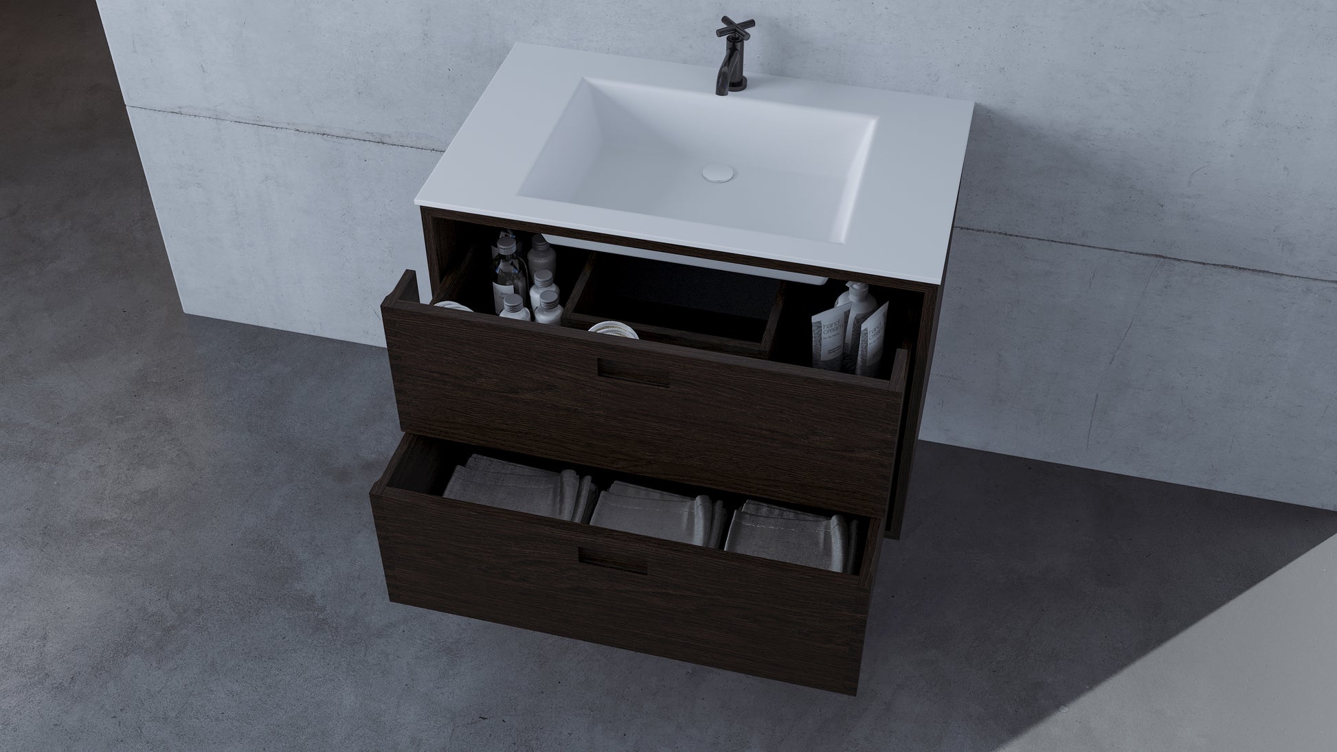 • Drawers: Several spacious drawers, depending on the size chosen, equipped with full extension and soft-close function for quiet and smooth operation. The larger the size, the more drawers.