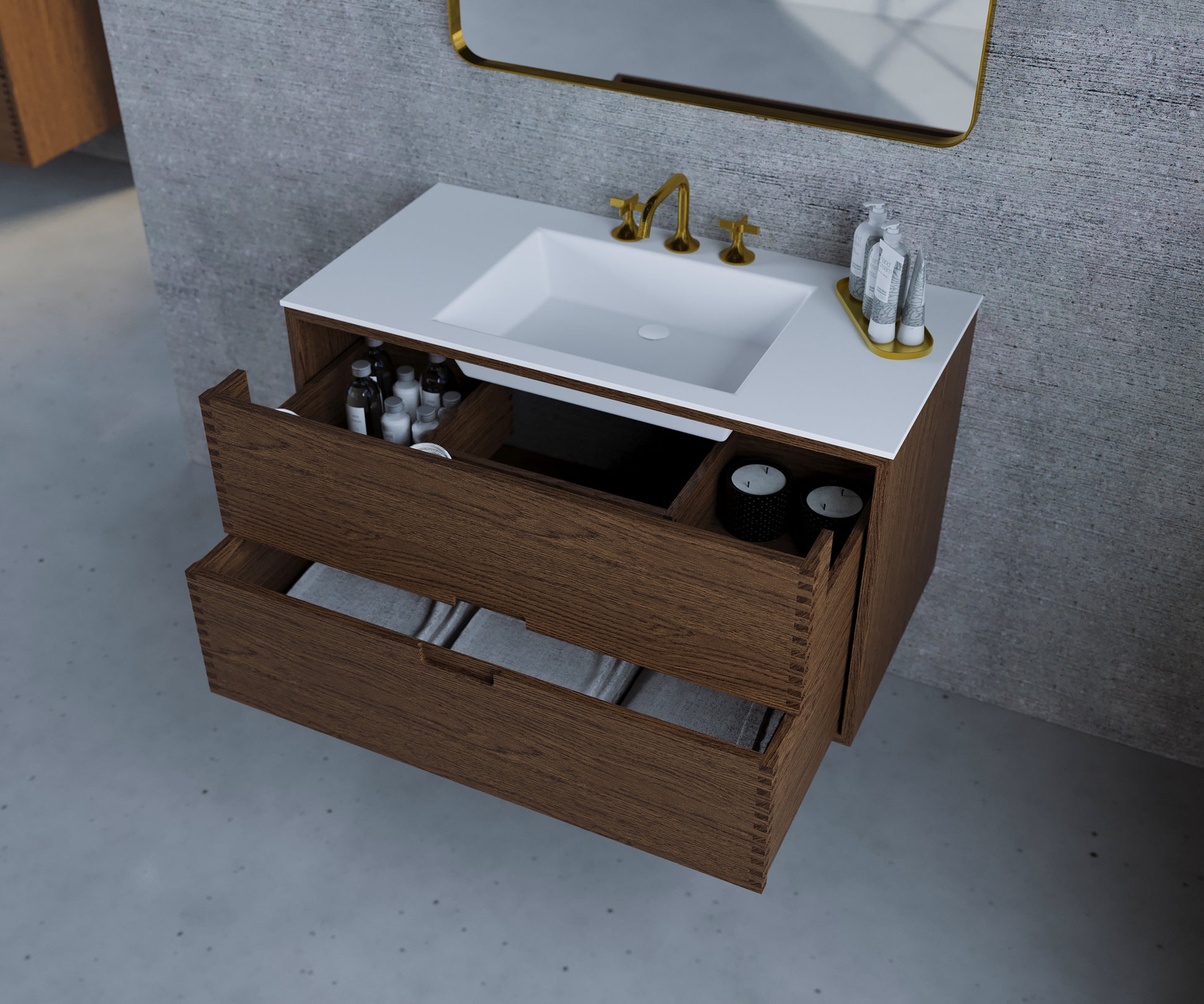 • Drawers: Spacious drawers that provide ample storage space. The drawers are equipped with full extension and soft-close function for quiet and smooth operation.