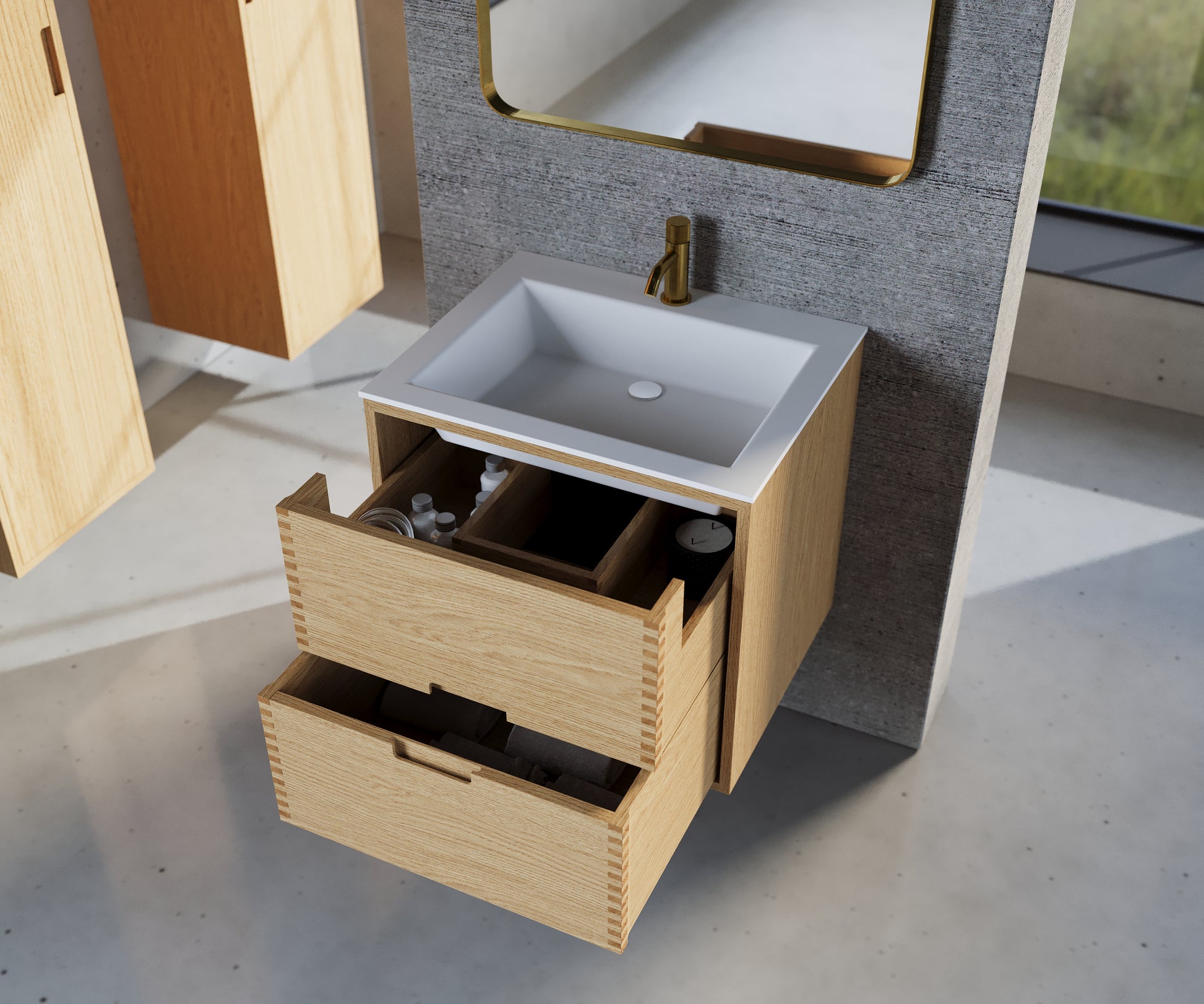 B&B Design Vida er et eksklusivt, snedkerlavet badeværelsesmøbel, der kombinerer elegance og funktionalitet på smukkeste vis. Designet med fokus på det danske håndværk og de bedste materialer, giver dette møbel dit badeværelse et stilrent og sofistikeret udtryk. Perfekt til moderne badeværelser, hvor kvalitet og æstetik går hånd i hånd.